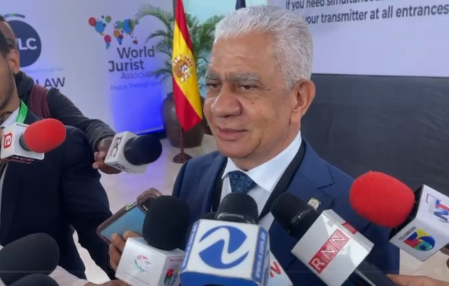 Abinader y Leonel se abrazan y levantan sus manos en acto del World Law Congress como gesto de unidad nacional